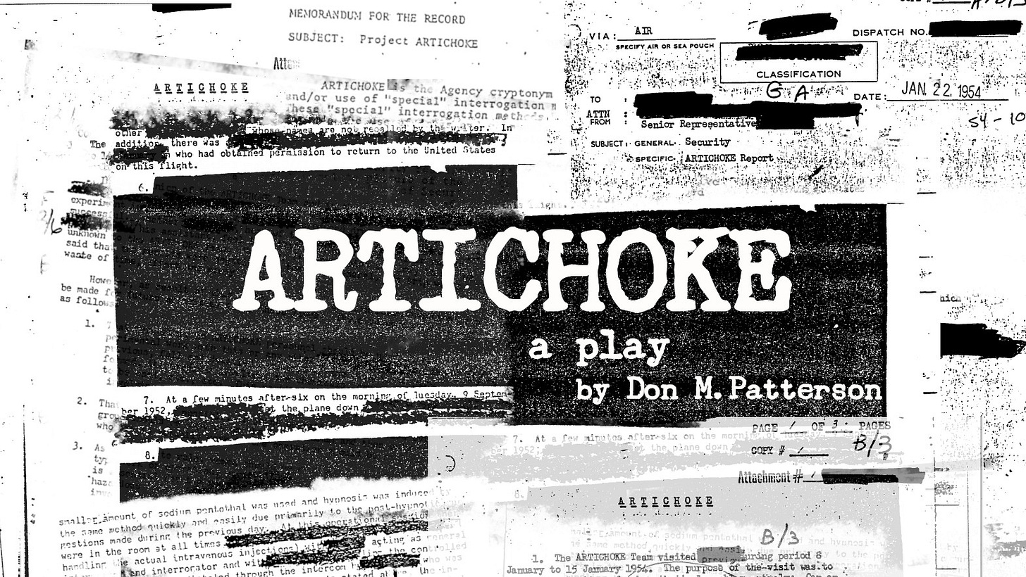 OrGiveMeDeath Industries is proud to present our first stage play: ARTICHOKE. Unearthed from deep within a cache of declassified CIA documents, this farcical tale was rejected by history for its sheer absurdity. Set in 1952 and inspired by real events, ARTICHOKE is a Cold War chamber piece about self-delusion, paranoia, bad coffee, and the race to control the human mind. Now available on Kindle1 and print. The following essay is adapted from the introduction to the stage play.