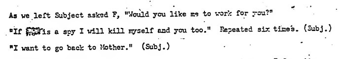 Further research into the original documents by this author reveals the full comedy of errors captured in bureaucratic prose and fragmented transcripts. The original documents include a detailed timeline of events, first-hand observations, and bizarre clips of dialogue, including a drugged subject musing, “Sometimes a dream is so vivid that after a couple of days you remember it almost as real.”3