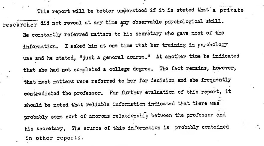 Nevertheless, the agency was successful in finding a candidate who was “extremely interested in the use of hypnosis, drugs, and ESP.” He was nearing retirement, and his ethics were such that he would go along with the program “regardless of how new or revolutionary it may be.”